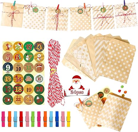 Yiifell Adventskalender Zum Befullen 2020 Tuten 24stk Weihnachtskalender Selber Basteln Kinder Frauen Madchen Manner 13x18cm Weihnachten Geschenktuten Mit 24 Adventszahlen Aufkleber Amazon De Kuche Haushalt