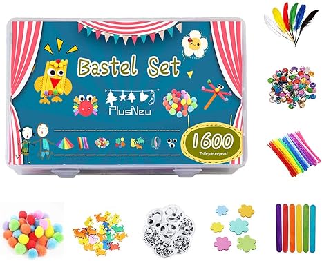 Bastelset Kinder 1600 Teile Inkl Pfeifenputzer Pfeifenreiniger Bunt Wackelaugen Selbstklebend Pompons Usw Im Bastelbox Zum Basteln Fur Madchen Und Jungs Amazon De Kuche Haushalt