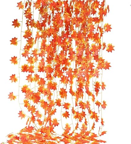 Amazon De Mazheny Kunstliche Ahornblatt Girlande 12 Stuck Hangende Ranken Pflanzen Herbstlaub